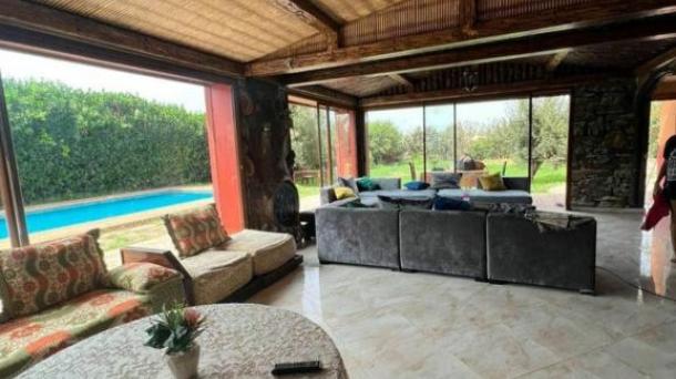 شقة للإيجار تتكون من 2 غرف نوم 2 صالة كبيرة مفتوحة ومطبخ مجهز وحمام مطل على حمام سباحة وحديقة كبيرة